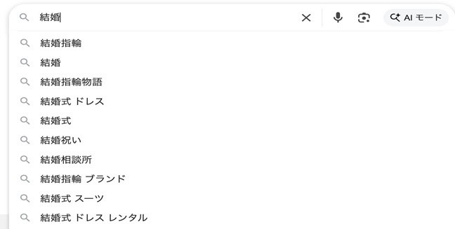 When searching Google and other search engines, Japanese users tend to omit particles, and search using keywords only. And this effect is compounded by Google’s “search recommendations” as the user is typing. We can see from the example, sometimes keywords include spaces, sometimes not.