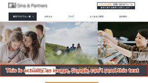 To fix this problem, make sure your web pages (especially your Homepage), and clear titles, and clear descriptions of what your service offers, who it is for, and the benefits of choosing your product or service over others. If you do use images, make sure the images have clear titles and alt-descriptions.